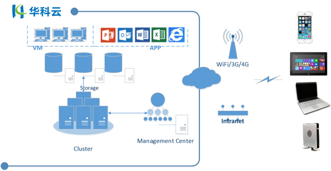 软件研发行业和硬件行业有较大的不同,主要体现在研发向导、创新、知识密集型等方面,华科云解决方案主要针对不同员工有不同的桌面环境: